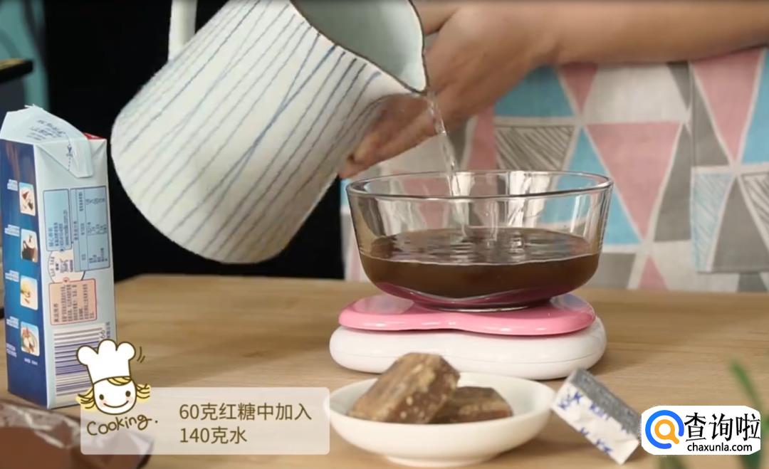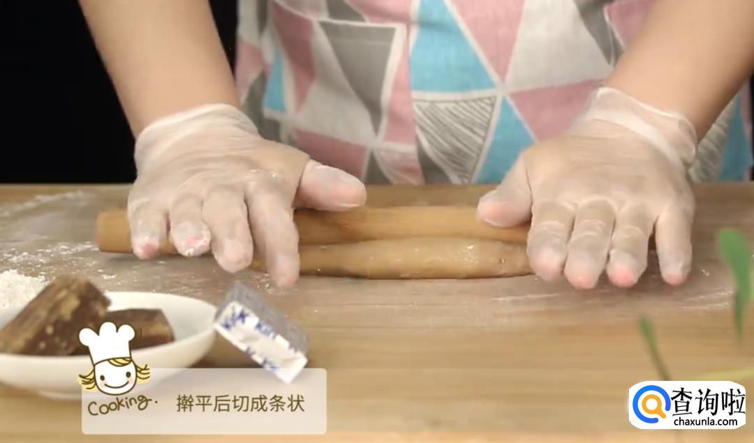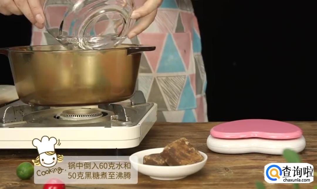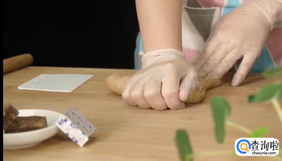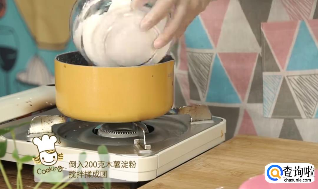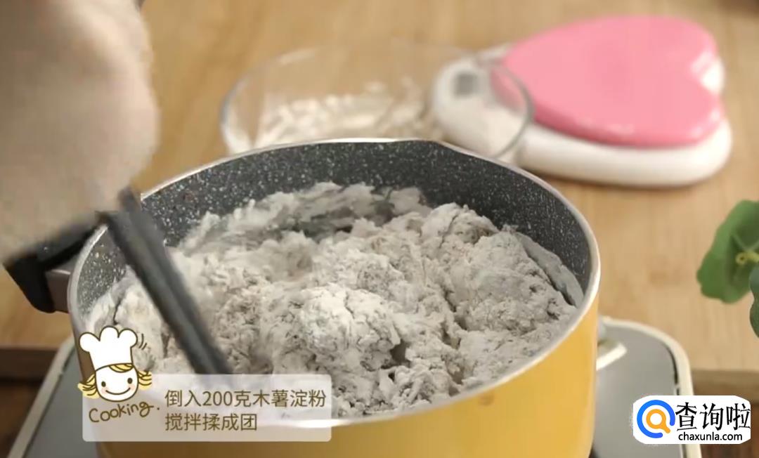 红糖和水倒入锅中煮开,倒入木薯淀粉搅拌揉成团状。