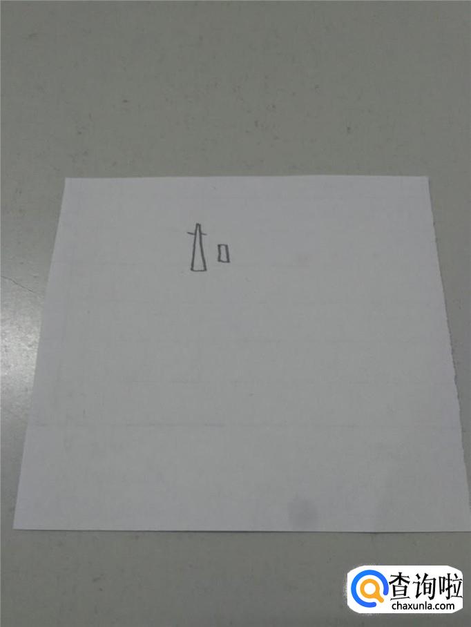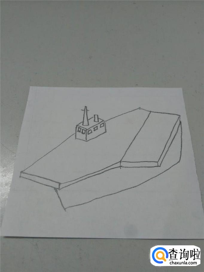 先画指挥塔,画一高一矮两个梯形,在高的梯形顶端两侧画两条短线,表示天线。