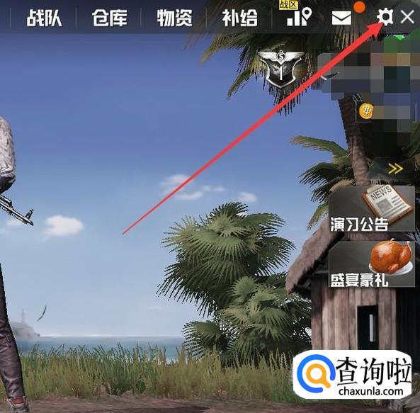 首先你要登录到刺激战场,然后找到右上角的设置按键,点击进入。