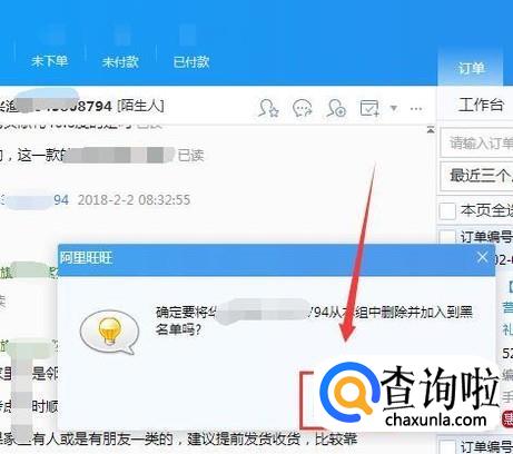 如下点击的是第2步中的“移动黑名单”按钮,会直接弹出一个小窗口,如果确定要将此顾客转到黑名单,这时可以直接点击“确定”按钮进行确认操作。