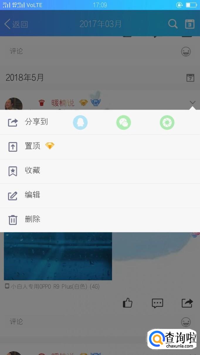 找到你想要重新编辑的说说,点击它右上方的下三角符号,找到编辑选项。