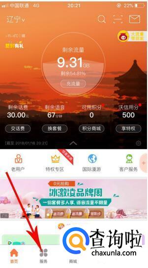 首先,下载“中国联通手机营业厅客户端”,打开“中国联通手机营业厅客户端”,进入主界面。