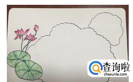 然后用铅笔将推荐卡的大致边框用铅笔勾画出来,可以画随意喜欢的图案,以荷花边框为例子。