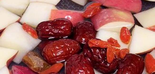 材料清洗干净、红枣去核,苹果去皮、去核,并将其切件;红枣、苹果放入锅,加入适量清水,煲20分钟;放枸杞煲10分钟后,关火;温度降至80度、加入蜂蜜即可。