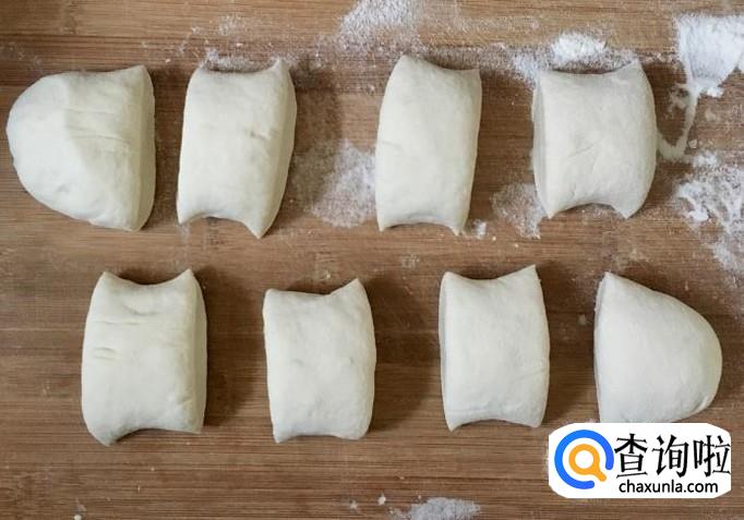 发酵好的面团撒上一层干面粉反复的揉面至内部没有孔洞,搓成长条状切成大小均匀的面剂子再挨个揉几次放置再次醒10分钟,然后擀成中间厚边缘薄的面皮