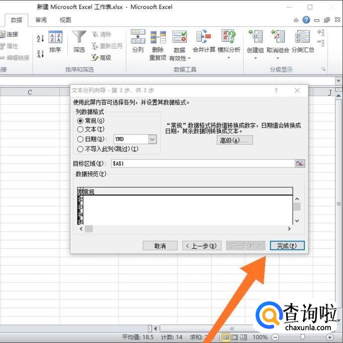 在“列数据格式”中默认勾选“常规”即可,然后点击“完成”。