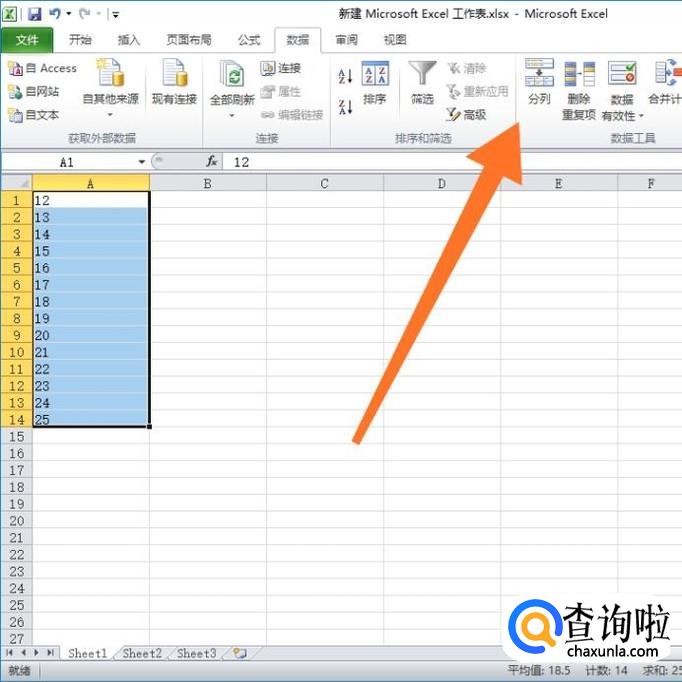 首先用鼠标选中需要分列的单元格,然后点击进入“数据”选项卡。