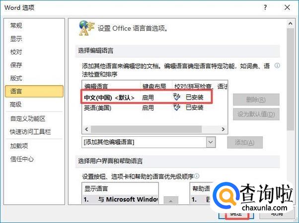 弹出的界面,我们点击中文,然后我们就可以点击确认了,这样我们就设置成中文默认输入法了。