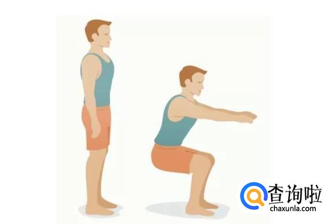 双脚自然分开,与肩同宽。双手平行平举。蹲下,起来。蹲的时候,感受腰椎的放松,有时能听到关节的声响。