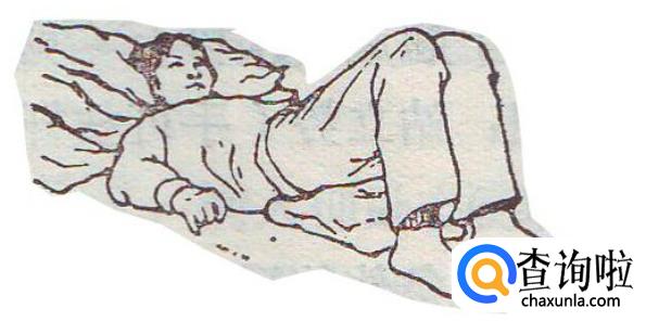 病人仰卧在高枕上,臀尾骨部垫一个枕头,双腿屈在胸前,双手抱住,腰部自然下沉十五分钟以上。