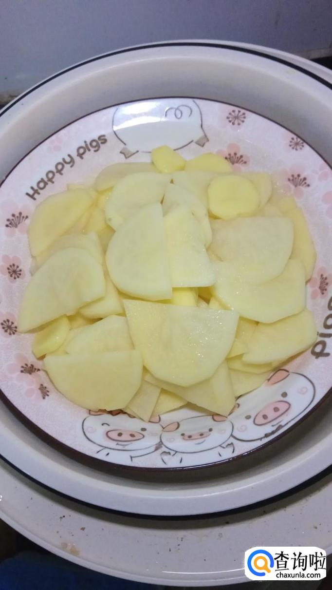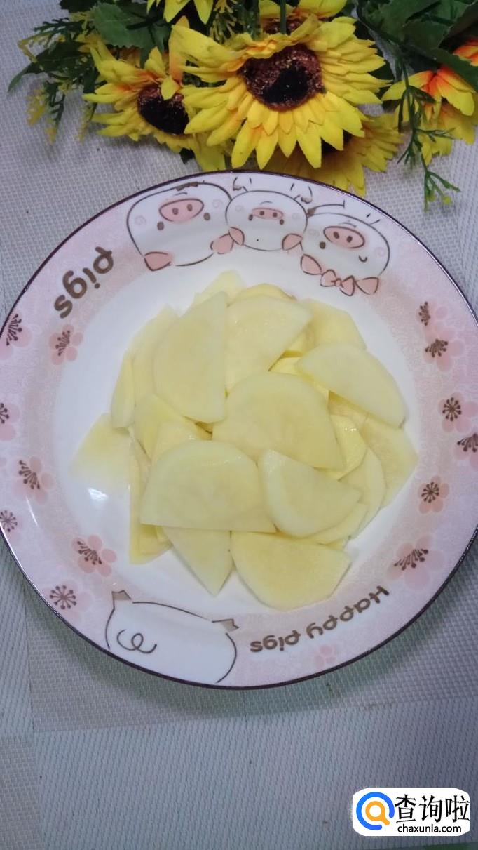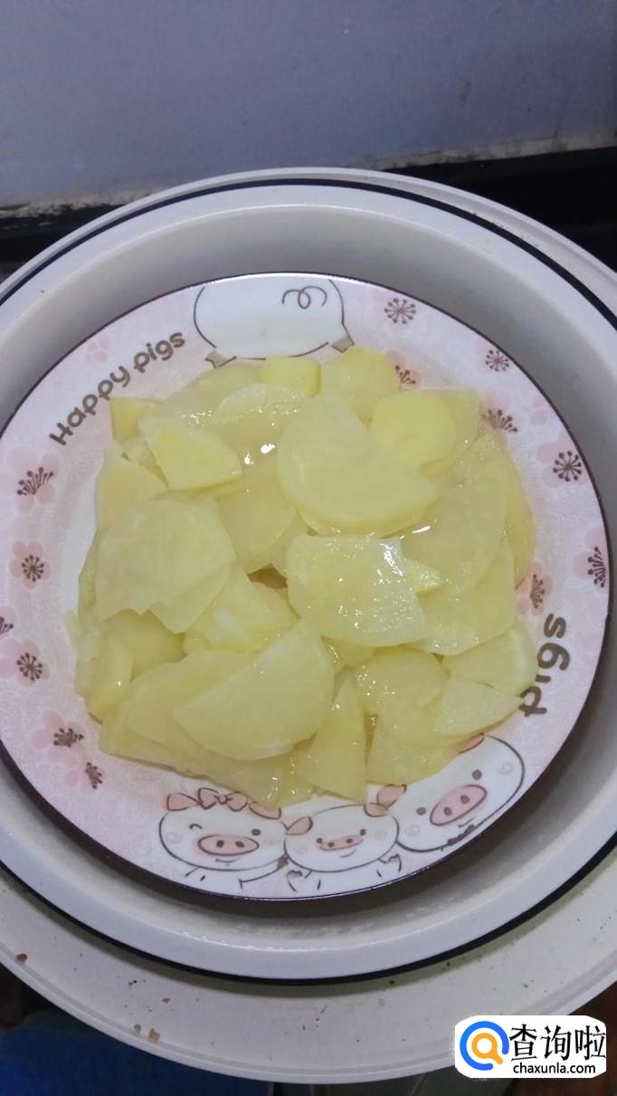 准备一个土豆,洗净去皮后,不用洗去淀粉,切成片,直接上蒸锅蒸熟,大约蒸15分钟左右就好了。