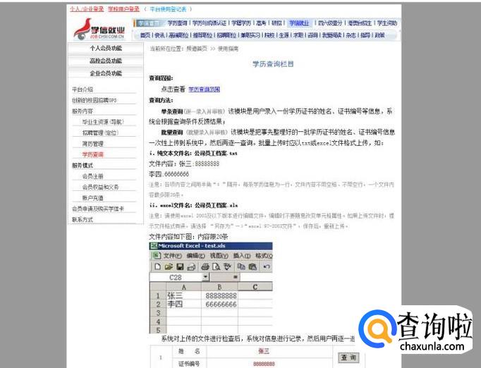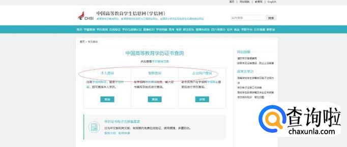 网站提供了三种查学历的方法,分别是本人,零散,企业用户查询