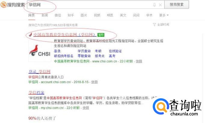 搜索学信网,出现如下图所示的搜索界面,进入官网