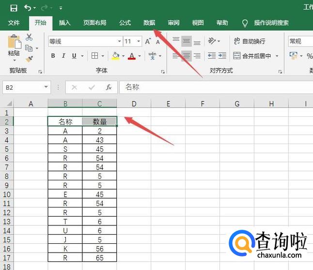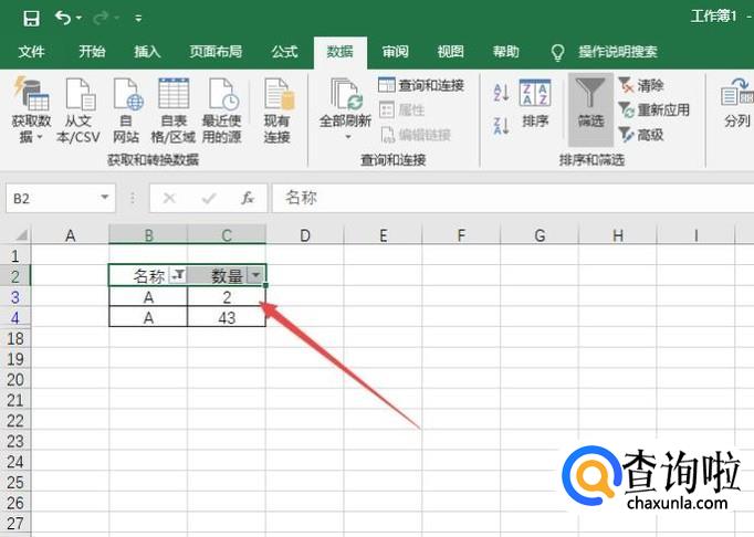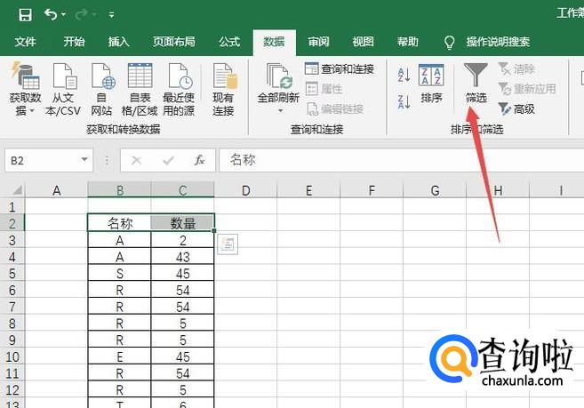 点击确定后,表格就只显示“A”的数据,其余数据都被自动隐藏了,这样筛选也就完成了。