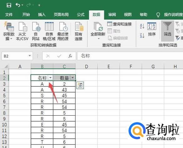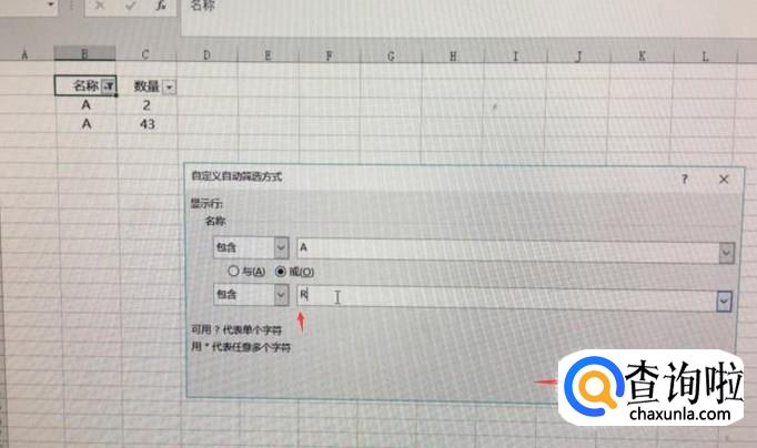 这样,所有包含“A”字或“R”字的名称就都被筛选出来了。