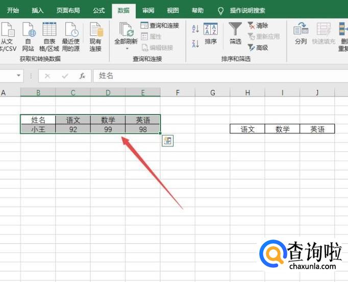 这时,数据区域的第一行(抬头)处每个单元格都出现了一个下拉箭头;