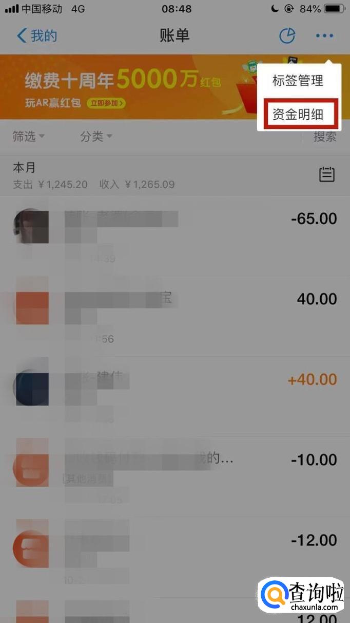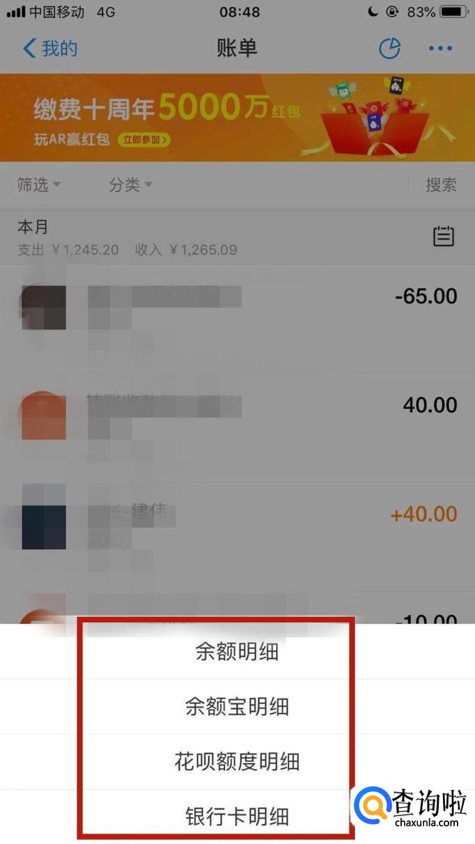最后选择我们想要查看的明细类别,就能够查看到所有的交易明细了。