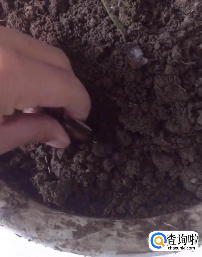 把发芽的种子,芽朝上埋在花盆里并立即浇水。