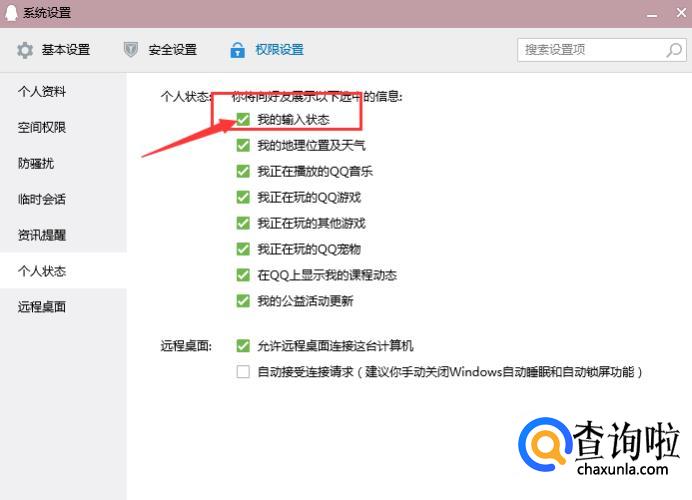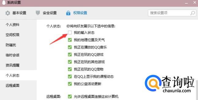 在个人状态页面可以看到“我的输入状态”前面是打了绿勾的,如图所示。