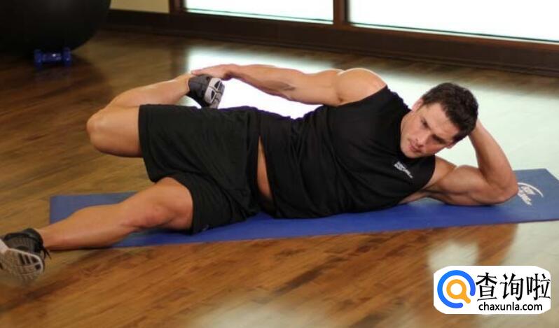 1.开始时,身体右侧卧与地面,右膝弯曲呈90度角放松置于身前的地面上(这样有助于稳定躯干)。2.将左膝在身后弯曲,用你的左手握住左脚。拉伸你的臀屈肌,将你的左臀前压,将左脚推回到手中。换另一边重复以上动作。注意:1、侧卧的那侧手臂,可以放在头下支撑。2、动作要注意要慢,速度过快容易拉伤。