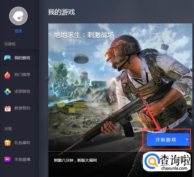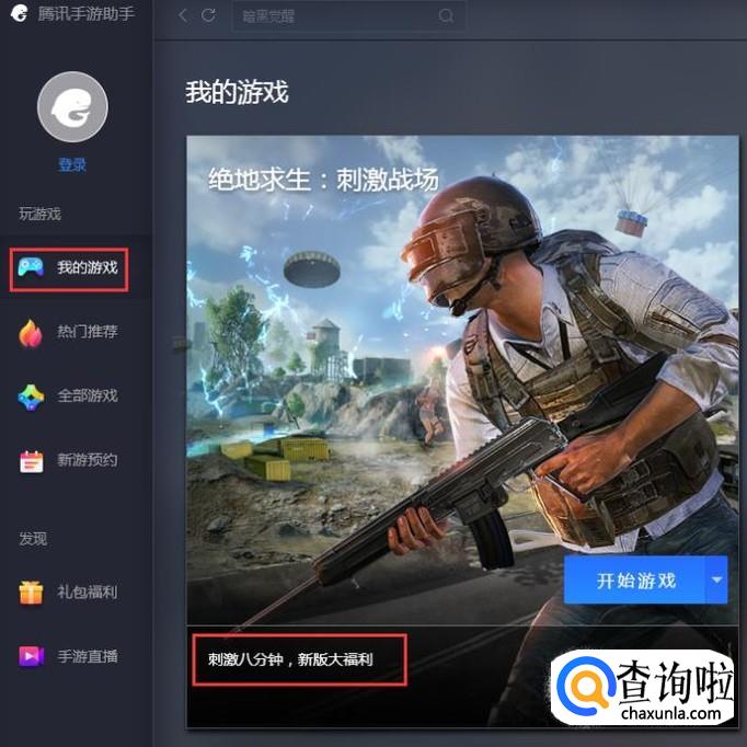安装完刺激战场后点击我的游戏功能,会看到刺激8分钟新版大福利的字样,如图