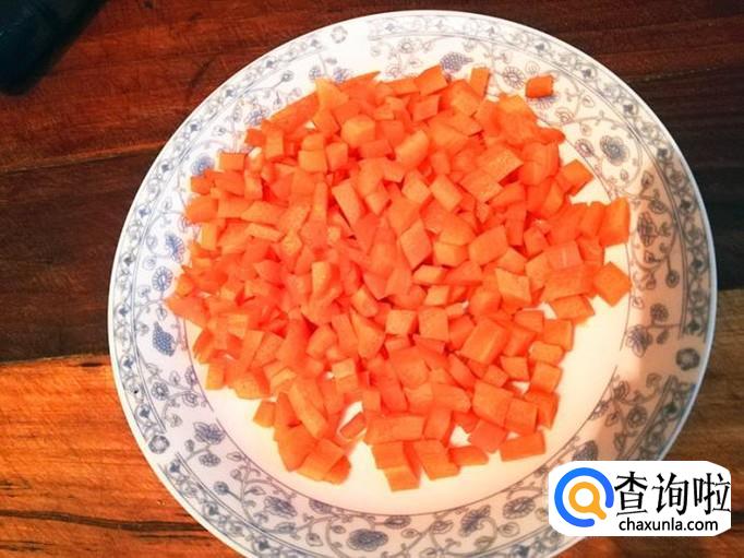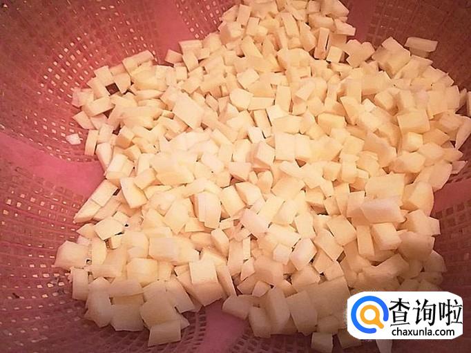 把红萝卜和土豆切成如下的丁丁备用。