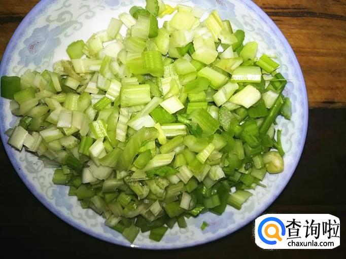 芹菜切成如下的形状,最好是把叶子和杆分开装备用。