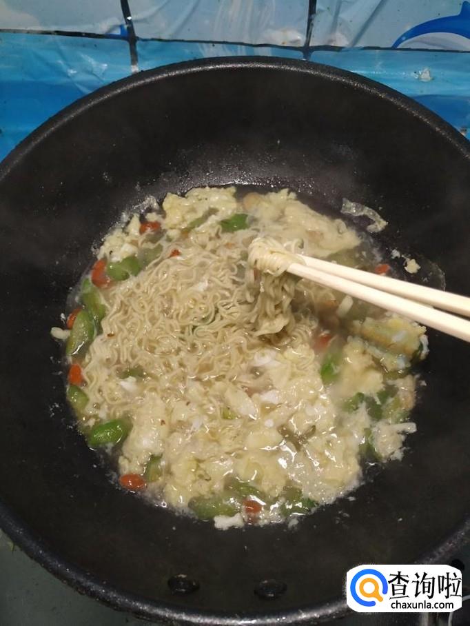 准备一块面饼,放入锅中,搅拌均匀后,大约煮五分钟左右。