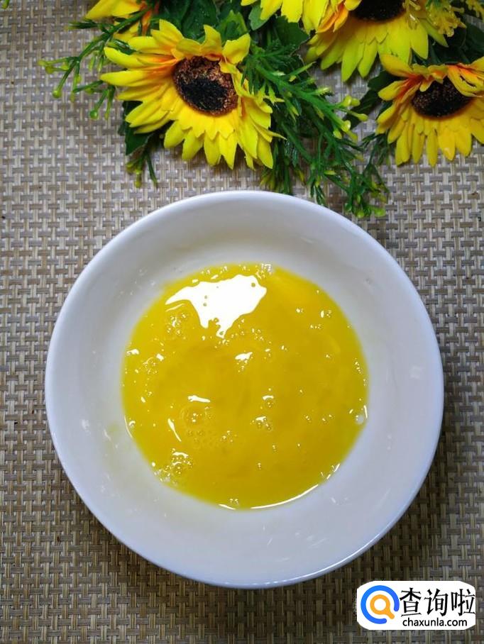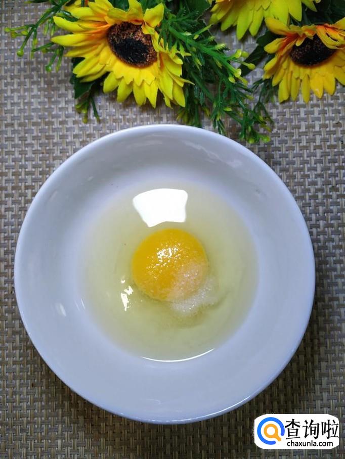 碗中打入一个鸡蛋,加入适量食盐,打散备用。