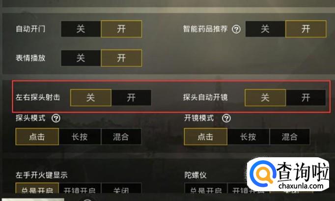 进入之后,将将左右探头射击和探头自动开镜都打开,如图所示。