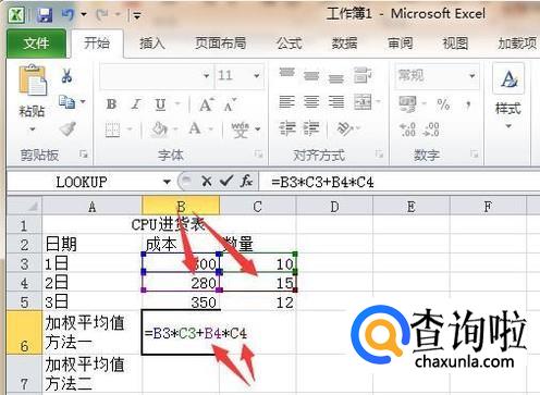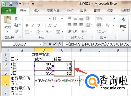将所有日期的总成本的公式括号括起来,后面敲入除号,除以总数量(即C3+C4+C5)
