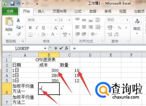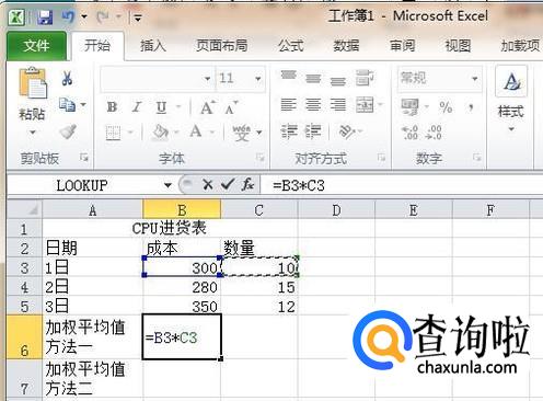 首先,打开Excel2010,如图所示录入需要的数据表,我们用两种方法算加权平均值。