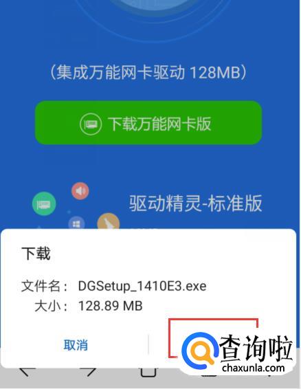 然后打开手机下载的万能网卡版驱动精灵并安装好,进入软件后立即检测,检测到缺少网卡,点击安装网卡即可,不需要联网下载,万能网卡版里已经内含了大多数网卡。