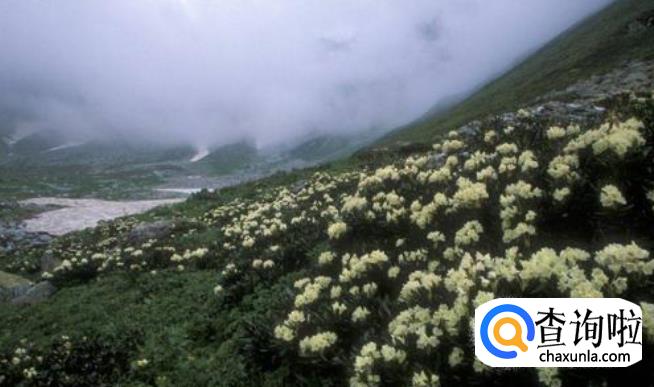 山坡上开着一大片繁花似锦的鲜花。