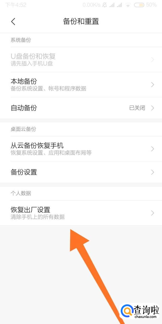 再点击“恢复出厂设置”选项即可恢复手机为出厂状态。