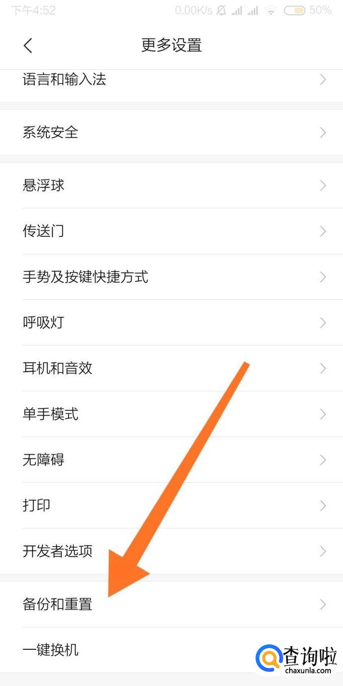 首先点击进入红米手机“设置”应用程序的“更多设置”选项。