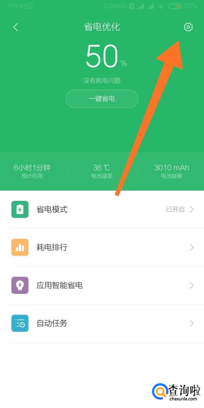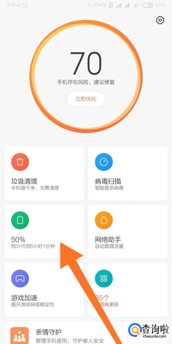 首先点击进入红米手机自带的“安全中心”的电量管理页面。