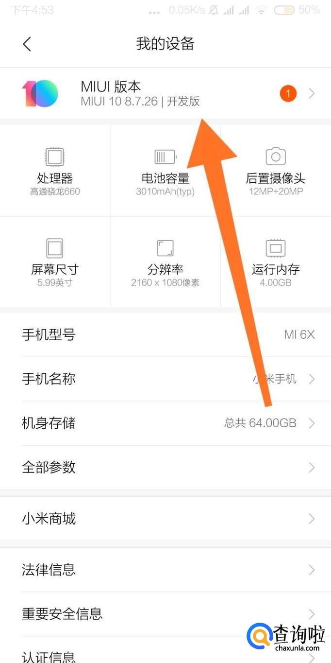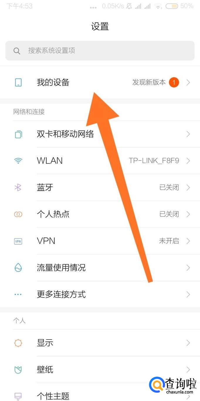 首先点击进入红米手机的“设置”应用程序里的“我的设备”选项。