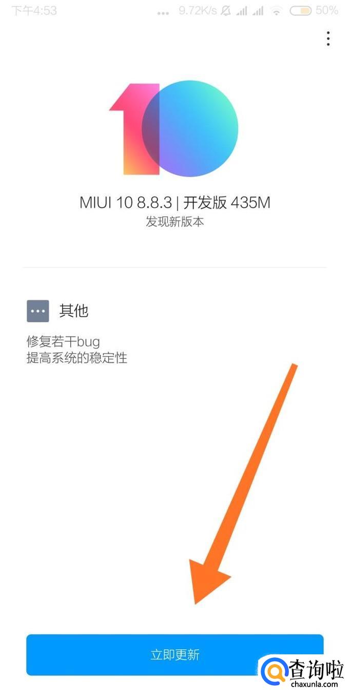 最后检测手机是否有新的操作系统版本,以此来修复手机存在的漏洞。如果手机屏幕提示有更新,点击“立即更新”按钮即可更新手机。