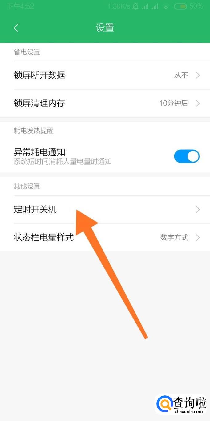 再点击进入“定时开关机”设置选项,确保红米手机关闭定时开关机功能。