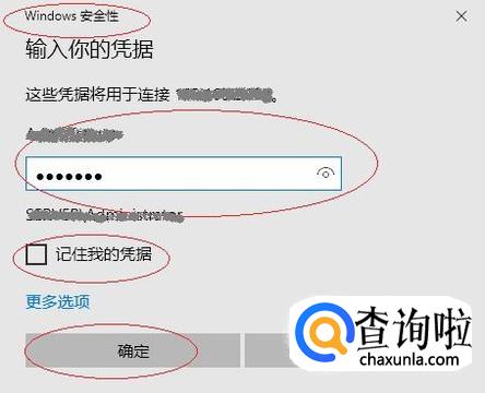 弹出"Windows 安全性"对话框,如图所示。勾选"记住我的凭据"复选框,设置完成点击"确定"按钮。