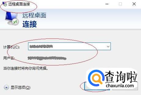 弹出"远程桌面连接"对话框,如图所示。计算机文本框输入服务器IP地址,点击"显示选项"图标向下箭头。