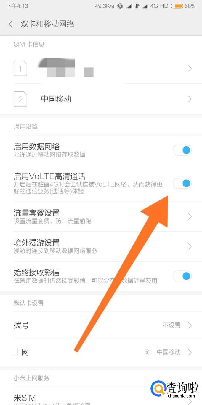 最后关闭“启用VoLTE高清通话”选项即可。