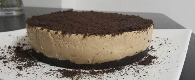 6.上述混合糊糊倒入装有消化饼干的蛋糕模,放冰箱冷藏2小时;