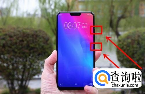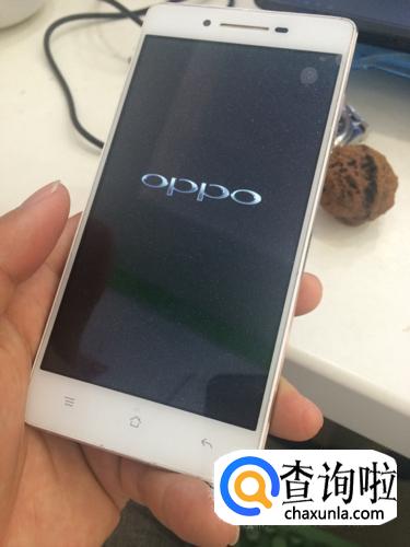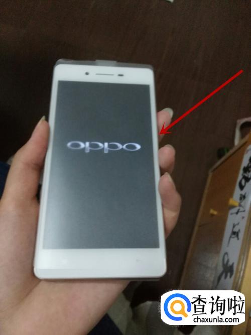 出现OPPO的界面后,我们立即长按声音减小按键不动,不要松手,如图所示。