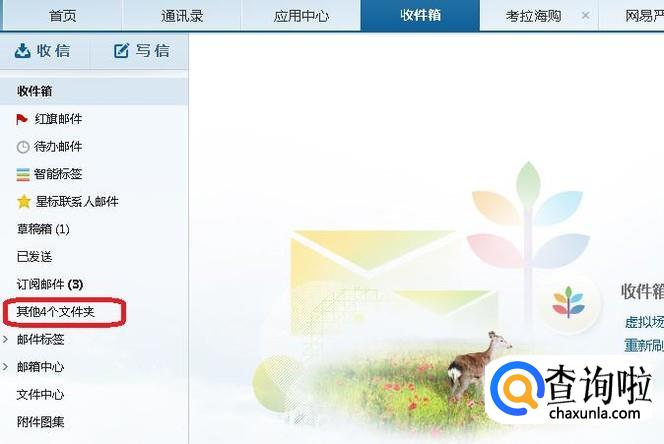 如果是这样删除邮件的话,找回邮件还是很简单的,如图所示,我们点击图中左侧栏的“其他4个文件夹”。