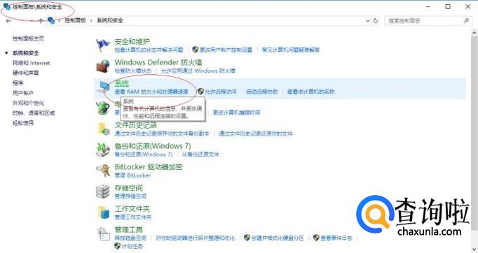 如图所示,唤出"系统和安全"选项界面。点击"系统"图标,下步将进行设置局域网工作组的操作。