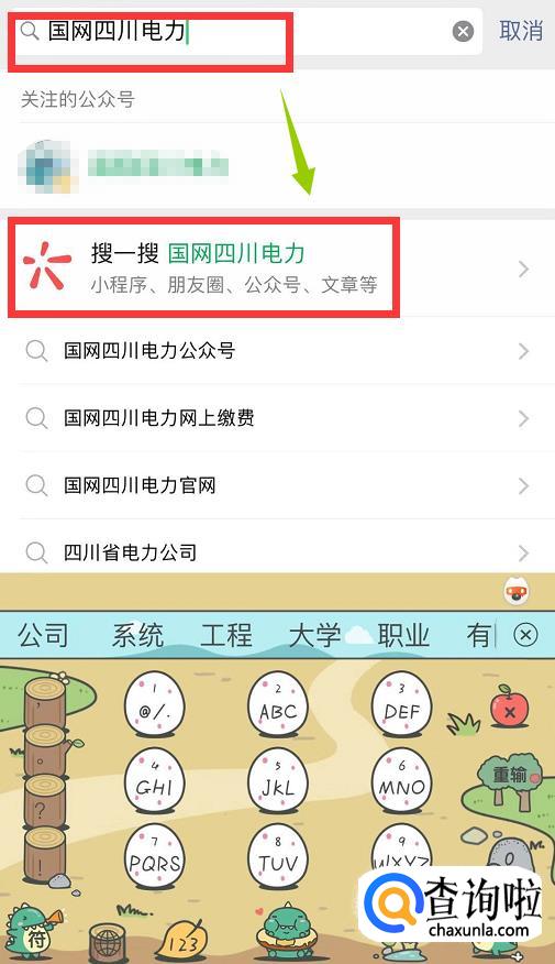 输入“国网”+“省名”+“电力”后点击“搜一搜”。此处以国网四川电力为例搜索。