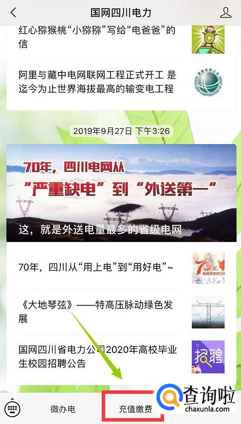 进入公众号后,点击底部菜单栏中的“充值缴费”。(注意省份不一样菜单栏名称也略有不同,其他省份可能叫“营业厅”等,根据实际菜单选择)