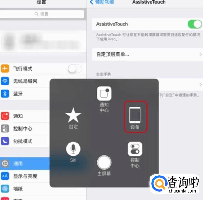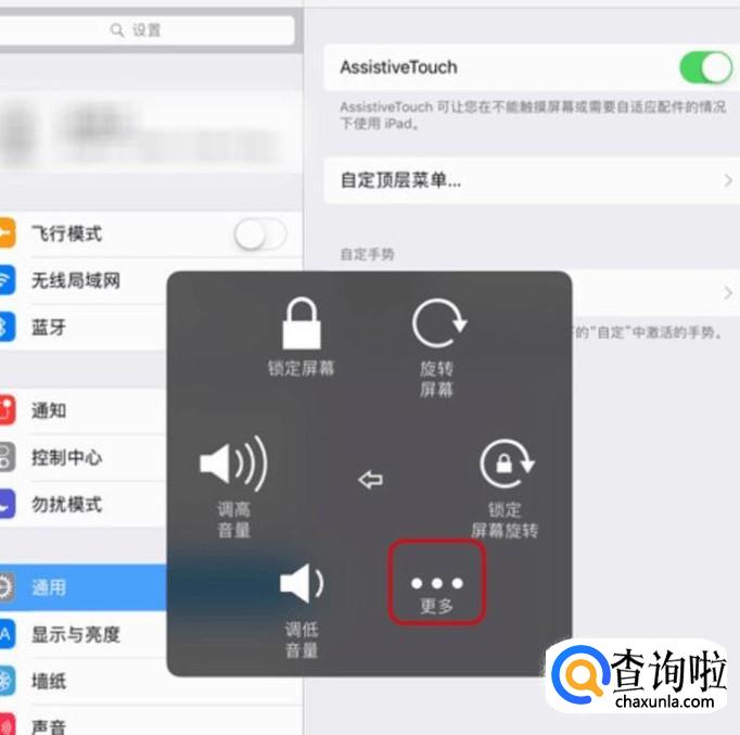 接着,当你打开这个功能后,iPad屏幕中会出现和苹果手机里一样的小圆圈,点击小圆圈,点“设备”---“更多”。